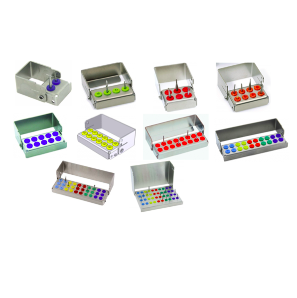 High-Performance Bur Stands, the Plug’In is a new concept of bur holders. The cover can be rotated to offer the burs flat or at an angle. It will hold any combination of FG or CA burs whatever their diameter. Stainless steel and silicone plug colours. It can be used with all known decontamination products, ultrasonic baths, thermo disinfectors, chemiclaves and autoclaves. Plug ' In 2 Holes-Size 3 x 2 x 3 cm Plug ' In 4 Holes-Size 4,5 x 2 x 3 cm Plug ' In 6 Holes,2 rows of 3 holes-Size 3,5 x 2,5 x 3 cm Plug ' In 8 Holes,2 rows of 4 holes-Size 4,5 x 2,5 x 3 cm Plug In 10 Holes,2 rows of 5 holes-Size 5,2 x 2,5 x 3 cm Plug' In 12 Holes,2 rows of 6 holes-Size 6,3 x 2,5 x 3 cm Plug' In 16 Holes,2 rows of 8 holes-Size 8,5 x 2,5 x 3 cm Plug' In 20 Holes, Small in size, large in storage,2 rows of 10 holes- Size 9,7 x 2,5 x 3,4 cm Plug In 30 Holes, Small in size, large in storage,3 rows of 10 holes -Size 11 x 3,5 x 3,4 cm Plug ' In 40 Holes, Small in size, large in storage - Size 10,9 x 8 x 3,5 cm